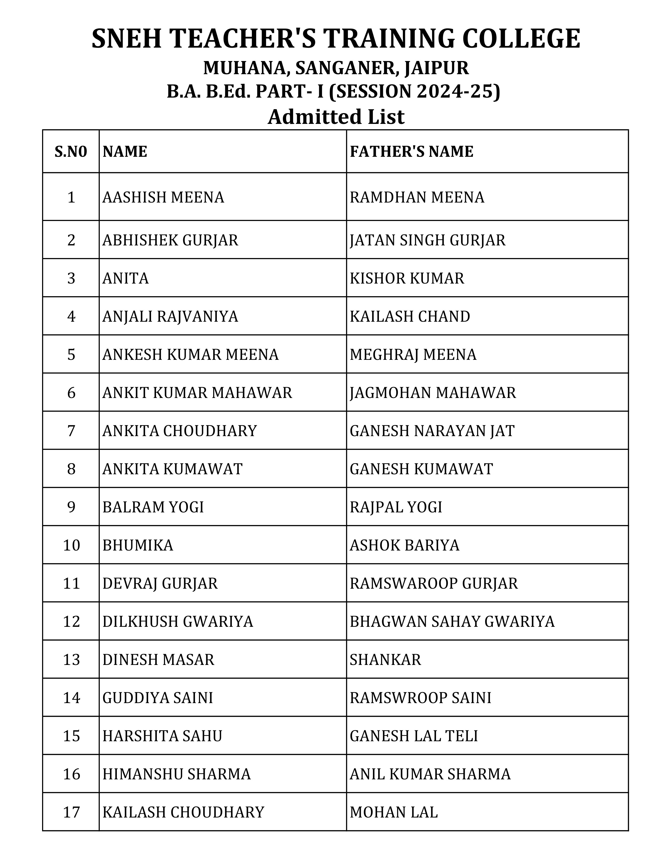 | SNEH TEACHER’S TRAINING COLLEGE | ||||