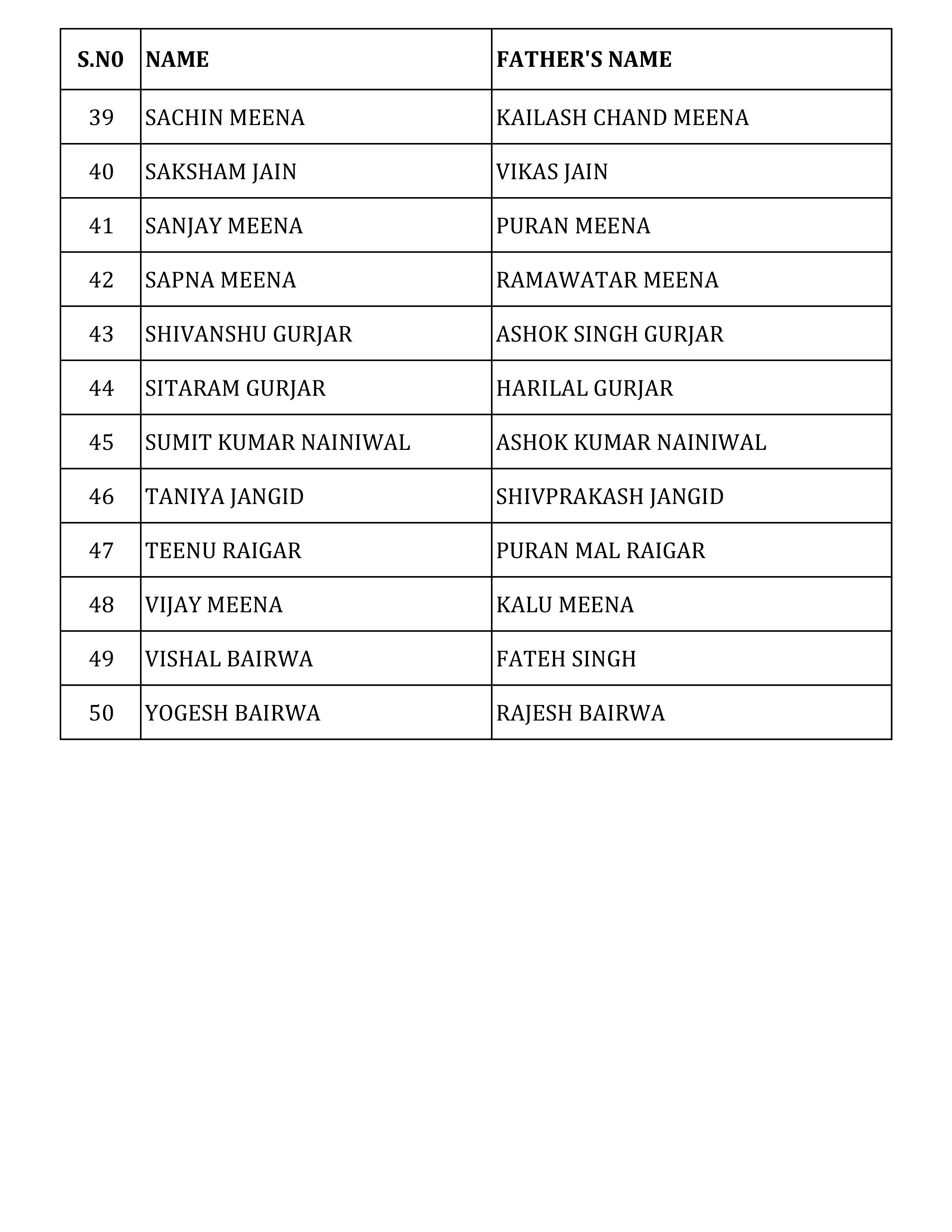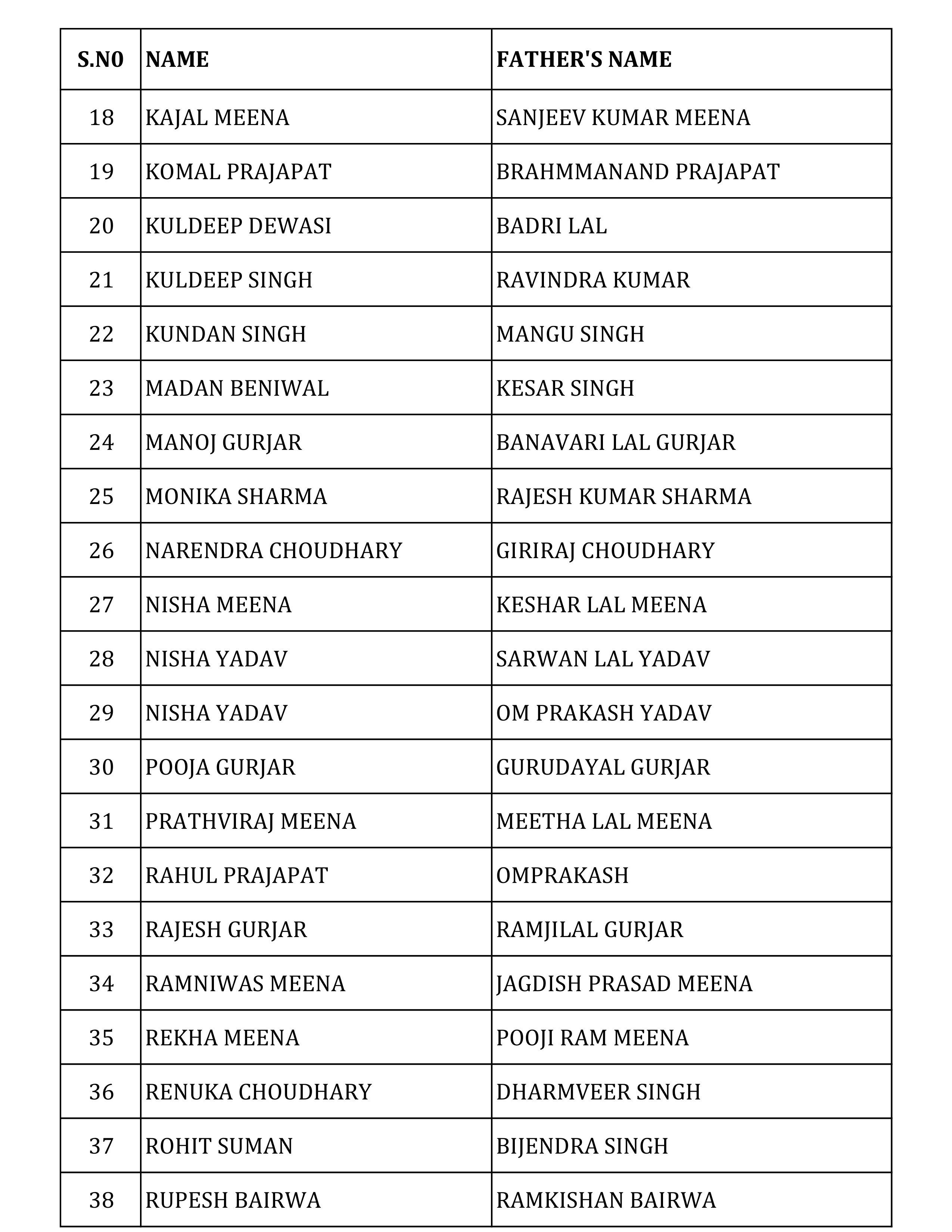 | 31 | PURAN KUMAR MEENA | PANCHU RAM MEENA | M | 28/04/2003 |